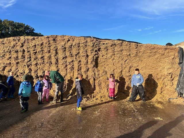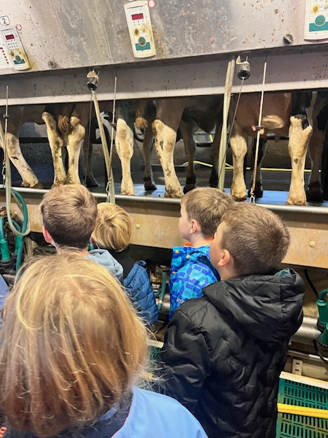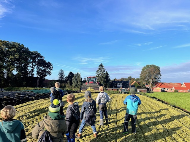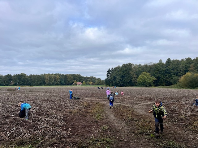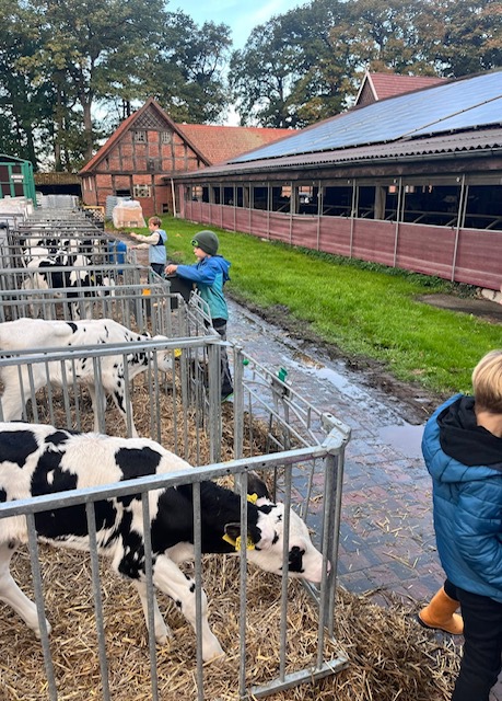 Am 9. Oktober ging es für die 2. Klassen auf den Bauernhof. Mit Planwagen wurden wir abgeholt und anschließend von den Höfen Thumann und Budke sehr nett empfangen. Wir bekamen eine Tour über die Höfe, durften die kleinen Kälber füttern, bekamen die Melkanlage erklärt und konnte so zahlreiche Einblicke von dem Leben auf einem Bauernhof bekommen. Die Kinder waren sehr interessiert und mit Freude dabei! Nach einem Frühstück durften wir unseren Ausflug dann noch auf einem Kartoffelfeld beenden und Kartoffeln ernten. Die Kinder buddelten fleißig und machten ihre Taschen voll - auf dem Feld hätten sie noch lange verweilen können!