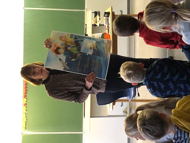 Dort machten sie zunächst in einem spannend vorgelesenen Bilderbuchkino die Bekanntschaft mit dem Mäuserich „Eisbjörn“, der auf einem Leuchtturm ein richtiges Abenteuer erlebt.