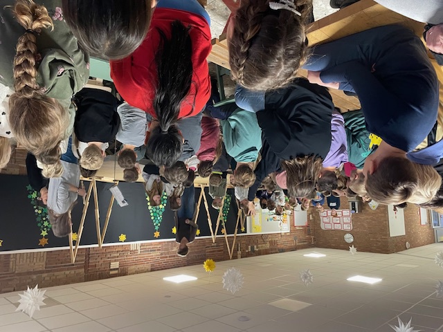Wie immer bei besonderen Anlässen sang die Schulgemeinschaft das Lied „Ich schenk dir einen Regenbogen“, bevor die Feier durch Frau Kiy beendet wurde.