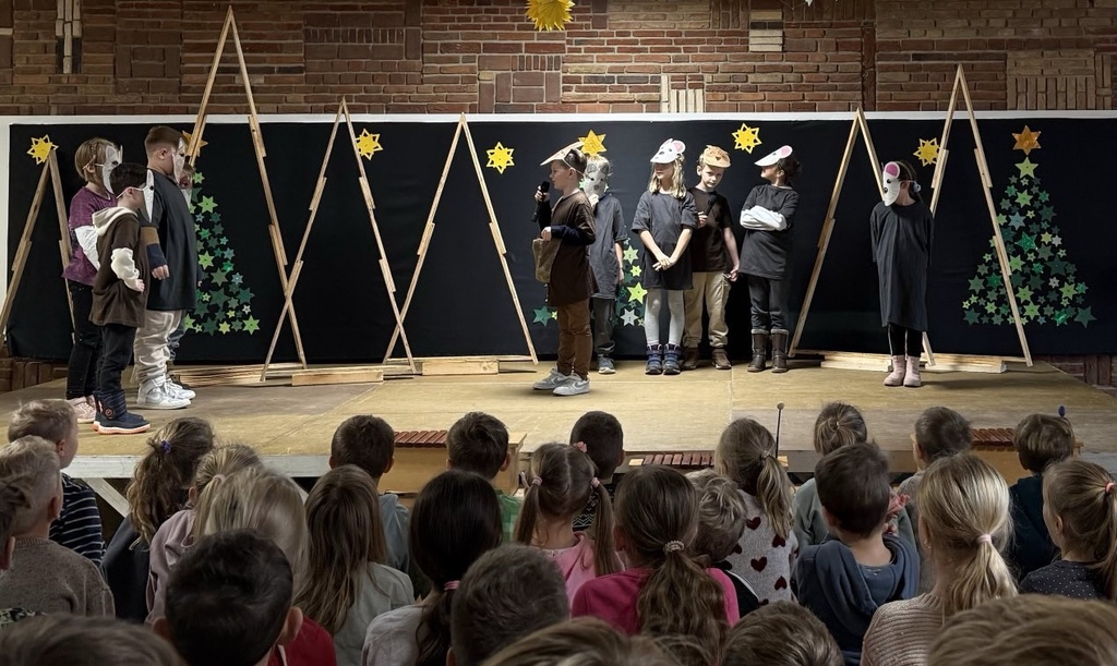 Die Klasse 2b erzählte in einem kleinen Theaterstück wie das Seesternchen die Weihnachtsgeschichte in die Unterwasserwelt brachte.